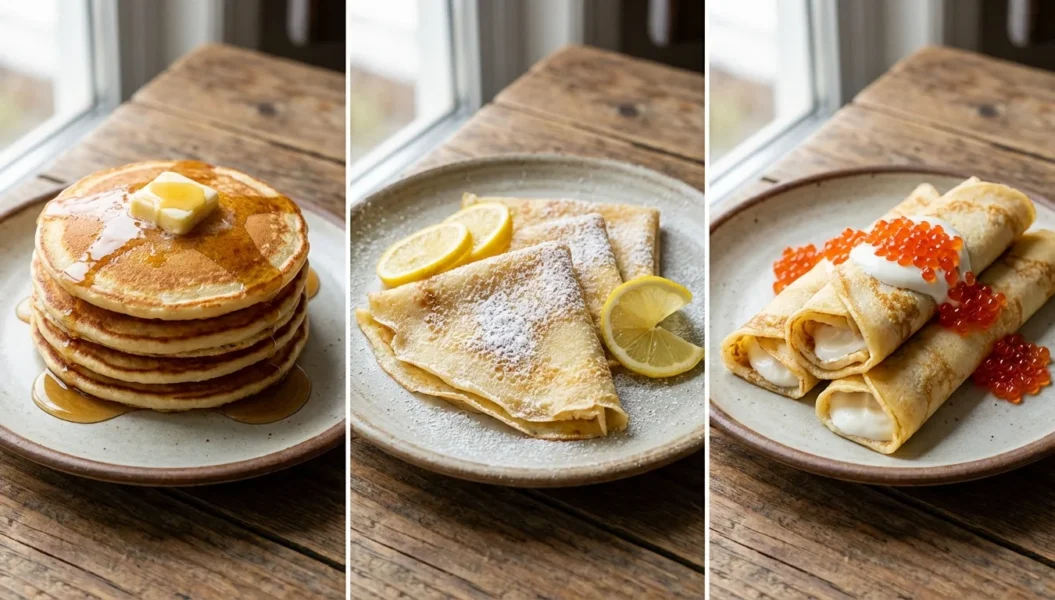 Когда русскоговорящий человек заказывает за границей или предлагает иностранцу «pancakes», он имеет в виду тонкое тесто, в которое можно завернуть