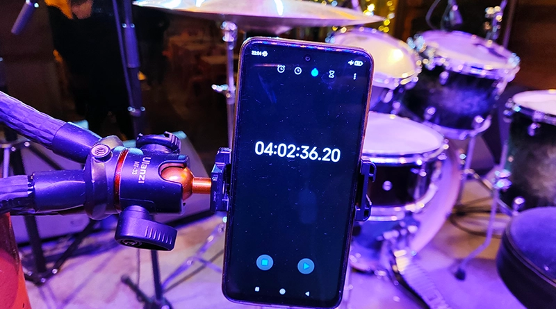 The performance followed a live concert format. Slow grooves alternated with extremely fast tempos, complex rhythmic patterns, and technical elements that increased overall energy expenditure. Any forced pause would have immediately ended the attempt, making concentration and endurance critical throughout the entire marathon.