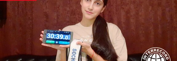 Наибольшая продолжительность стояния на одной ноге с завязанными глазами составляет 30 минут 39 секунд, достигнуто Тируи Овсепян (Россия) Москва, Россия 10 октября 2021 года The longest duration standing on one leg blindfolded (female) is 30 min. 39 sec. achieved by Tirui Ovsepian (Russia) Moscow, Russia October 10, 2021