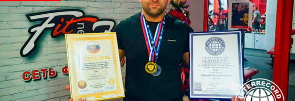Наибольшее количество вертикальных отжиманий в стойке на руках за одну минуту (мужчина, вес 100+) – 26, достигнуто Эдуардом Хачатуряном (Россия) Новороссийск, Краснодарский край, Россия 07 декабря 2021 года The most vertical push-ups in a handstand in one minute (male, weight 100+) – 26, achieved by Eduard Khachaturyan (Russia) Novorossiysk, Krasnodar region, Russia December 07, … Читать далее Наибольшее количество вертикальных отжиманий в стойке на руках за одну минуту (мужчина, вес 100+)