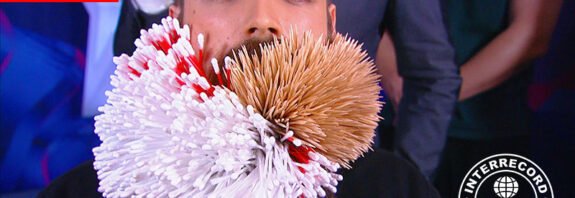 Артем Чеботарёв (Россия) является рекордсменом, за 1 час вставив в бороду 1147 ватных палочек и 1453 зубочистки. Рекорд установлен на на съемках программы “Я почти знаменит”. Россия, город Москва 31 января 2021 года Most toothpicks and cotton buds inserted into the beard in 1 hour Artem Chebotarev (Russia) holds the record, having inserted 1147 … Читать далее Наибольшее количество зубочисток и ватных палочек, вставленных в бороду за 1 час