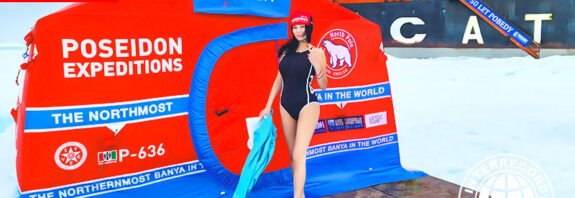 Первая женщина, которая попарилась в мобильной бане на Северном полюсе — Ксения Деревнина (Россия). Зарегистрированные координаты: 15 июля: 90°00′00.0″N, 16 июля: 89°59′06″N 58°19′01″E Организаторы рекорда: компания «Poseidon Expeditions», «Штаб Федора Конюхова», компания LetoClub45, компания «Мобиба». Северный Ледовитый океан, Северный полюс. 15-16.07.2021 года. Подтверждено 15 ноября 2021 года 15 июля мобильная баня «Мобиба» Р-636 в … Читать далее Первая женщина, которая попарилась в мобильной бане на Северном полюсе