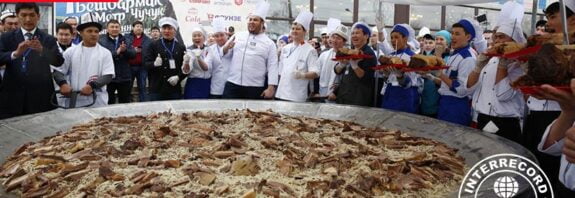 Самая большая порция бешбармака весила 1 464 кг , и была приготовлена Ассоциацией «АЮ Холдинг» и ООО «КазГрейн» (оба Кыргызстан) в Бишкеке, Чуй, Кыргызстан, 11 марта 2018 года. Одним из основных ингредиентов бешбармака является конина. The largest serving of beshbarmak weighs 1,464 kg and was achieved by Association AYU Holding and LLC KazGrain (both … Читать далее Самая большая порция бешбармака